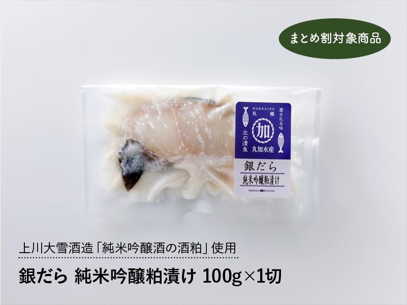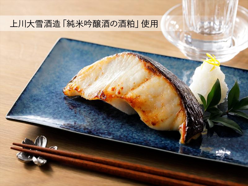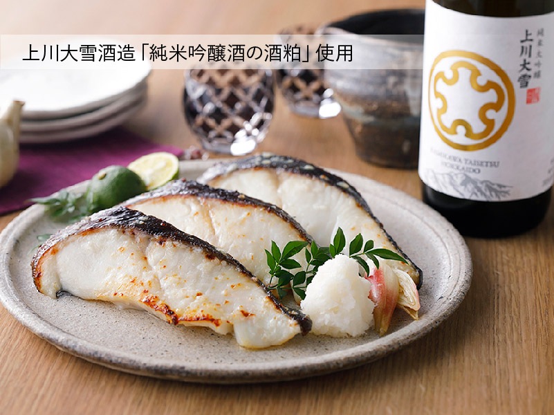 ついつい”食わさる”漬け魚をコンセプトに、華やかな香りと米の旨味が特徴の上川大雪酒造の純米吟醸酒の酒粕を使ってお魚に合うように、ひと手間加えた『純米吟醸粕漬』。高級魚銀だらの旨味をより一層引き立ててくれる逸品です。